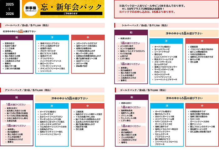 ※各パックお一人当りビール中ビン2本を含んでおります。